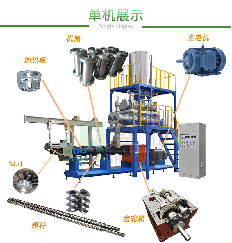 3、双螺杆膨化机:在高温高压环境、螺杆的揉捏情况下,经过调理工艺出产部不同的饲料,详细颗粒巨细与形状能够替换模具。4、运送机:将饲料运送到烤箱,
