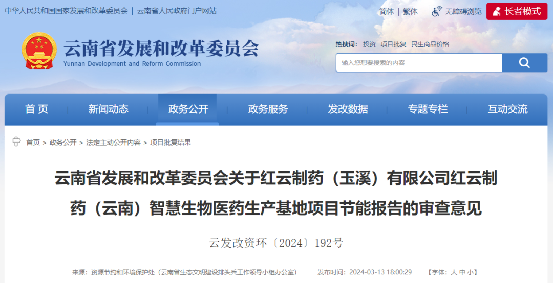 《关于红云制药(玉溪)有限公司红云制药(云南)智慧生物医药生产基地项目节能报告的审查意见》