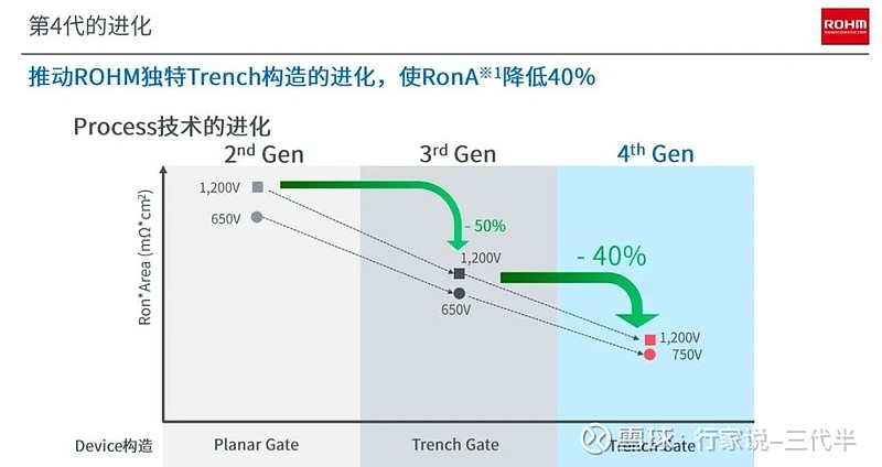 周劲:产品规划方面,罗姆目前主要以第4代SiC MOSFET产品为主,今后的计划是2025年、2028年分别推出第5代、第6代产品,每一代产品的导通电阻都将再降30%。