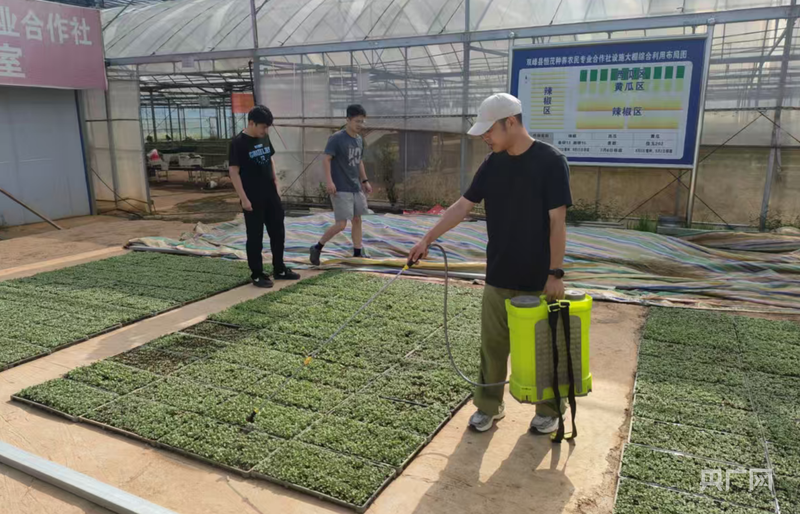 技能员展开全天候育苗后期上肥、练苗作业(央广网发 双峰县农机业务中心 供图)