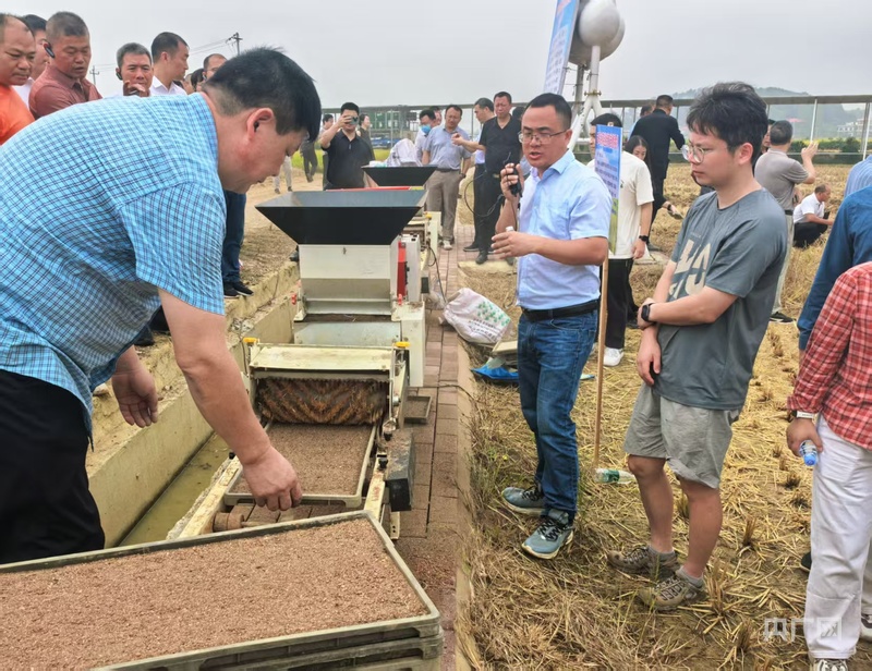 有了两次前期实践,在29日的油菜工业专家团作业交流会暨油菜大面积单产提高技能培育和练习现场,南京农机研讨所技能专家全程介绍油菜机械化育苗、直播、移栽机械和技能。一起,还约请大疆无人机展开飞播和飞防技能演示。作为全国丘陵农机熟化使用演示机具和双峰本地公司制造的油菜收成、加工、产后服务机械纷繁揭露露脸,有沃德出产的油菜全喂入收割机,双峰本地企业农友集团的油菜分段式收割机、1吨移动式烘干机,湘源金穗的全喂入收割机、无人操作旋耕机,志强机械出产的轻便型水稻油菜脱粒机,迎宾红福机械出产的电动风车清选机,与会各省专家和技能员一边听介绍、看演示,一边不停地问双峰丘陵小机具的价格。