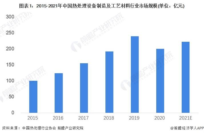 根据中国热处理行业协会数据,2020年,中国热处理设备和工艺材料销售营业额约200亿元,其中,热处理装备(含工装)约150亿元,工艺材料约50亿元,较“十二五”末增加近一倍。结合热处理行业应用下游需求市场发展状况综合测算,2021年,中国热处理设备和工艺材料销售额达到约222亿元。
