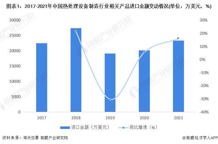 2017-2021年中国热处理设备制造业进口金额整体在2000万美元左右波动,2019-2021年中国热处理设备制造业进口金额逐年上升,2021年实现进口金额23391.03万美元,同比上升16.10%。
