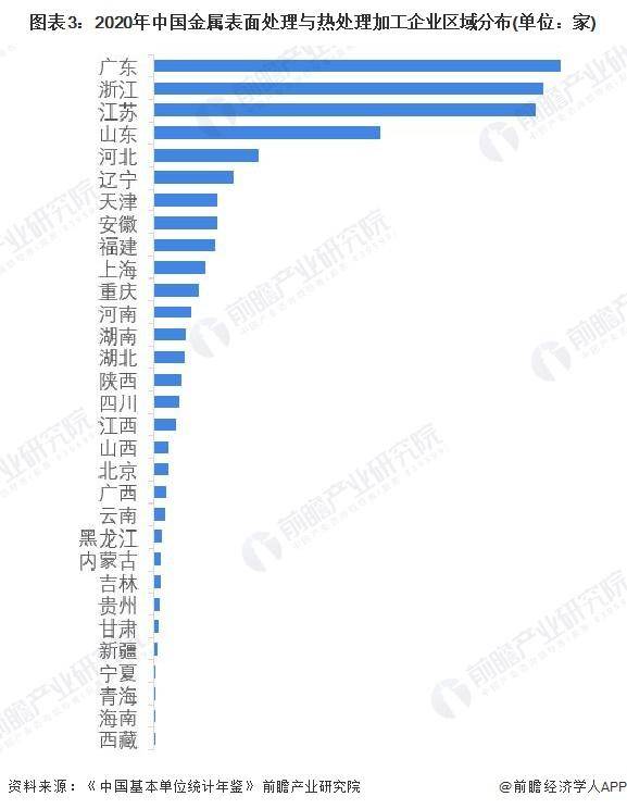 根据《中国基本单位统计年鉴》数据,截至2020年,江苏省金属表面处理与热处理加工公司共有2797家,位列全国第三。